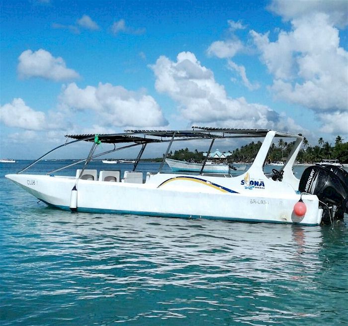in das Schnellboot für eine aufregende Fahrt zur Insel Saona.