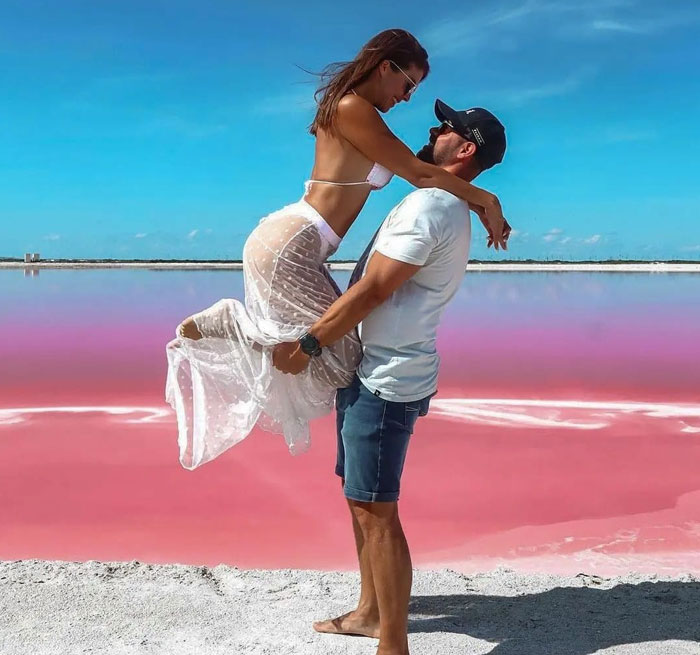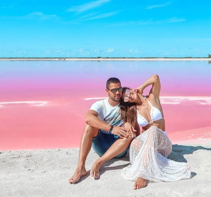 The aesthetically stunning Pink Lakes are located northeast of the Yucatan Peninsula, near a quaint fishing village called Las Coloradas, a destination spot and perfect day trip, a dreamy backdrop for vacation photos.