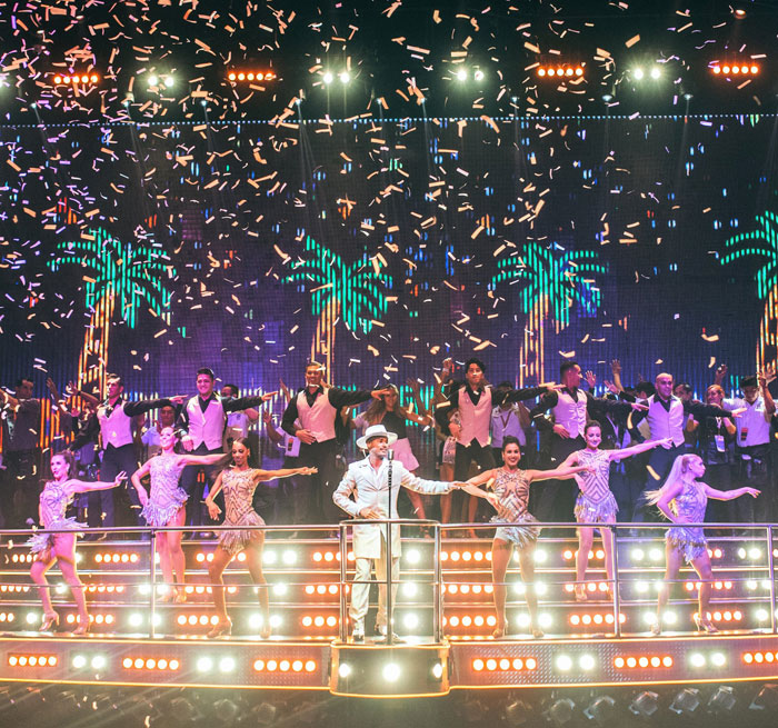 Increíbles shows en vivo que combinan cine, teatro, musicales, discoteca, videos, acrobacias, tecnología, actores, público y sorpresas a cargo de acróbatas, bailarines y actores profesionales.