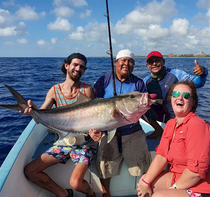 El capitán Salatiel Ku Caamal, vive en Playa del Carmen y tiene más de 22 años de experiencia en la pesca. El marinero Pedro es un joven pescador de 25 años que tiene 8 años de experiencia pescando con el capitán y es un gran guía de snorkel.