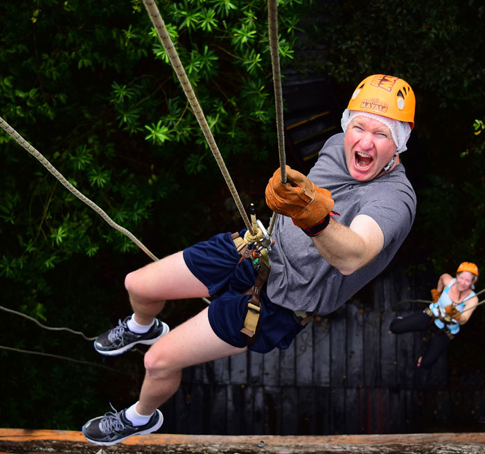 de 20 metros/65 pies, recorrido de 7 líneas de tirolesa con 5 estilos de vuelo y nado